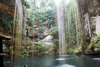 Nos encontramos con los geólogos que lo encontraron, que creen que los mayas construyeron en este lugar por su importancia sagrada.